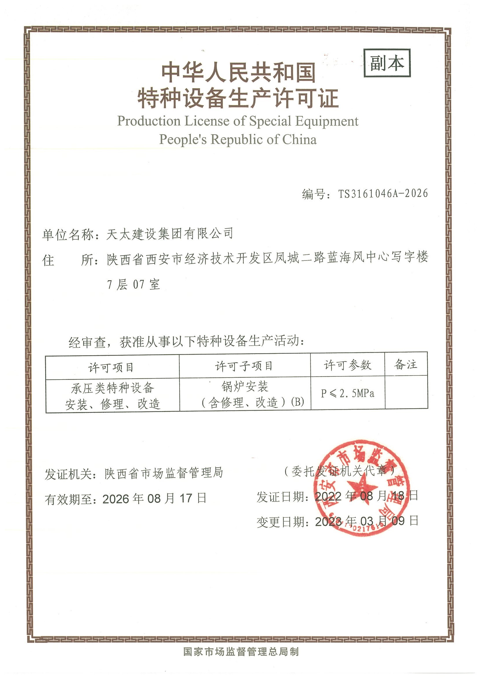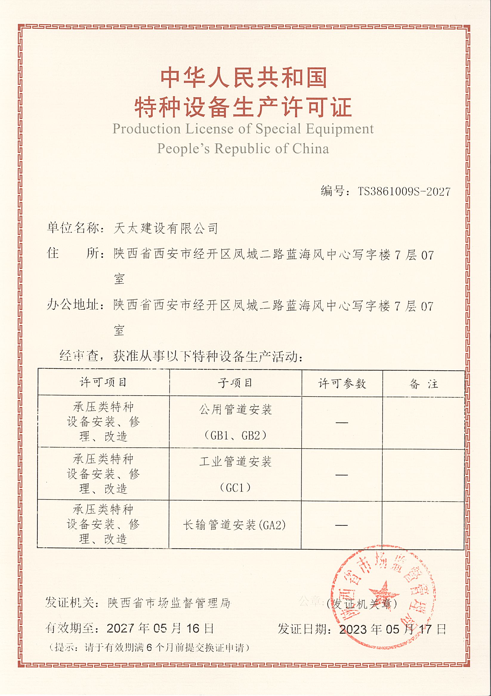 特種設(shè)備生產(chǎn)許可證